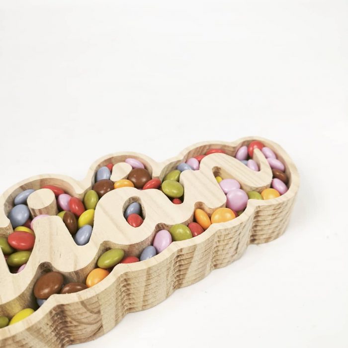 Personaliza este producto con un nombre, perfecto como expositor de comida para cualquier celebración. Puedes elegir el material y añadirle, si lo prefieres, un color o una capa de barniz.