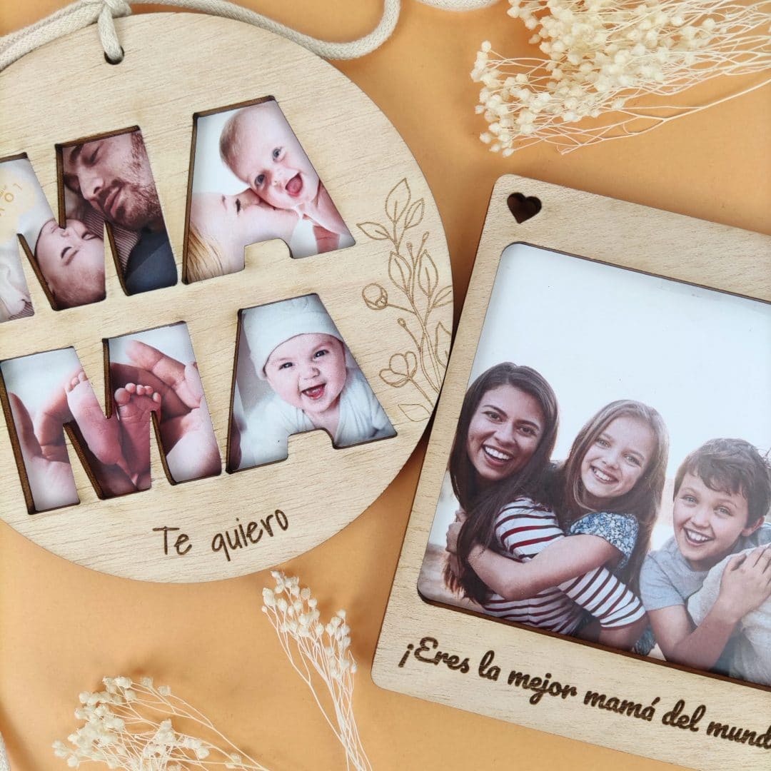 Elige uno de los dos diseños de la imagen, de estos dos bonitos portafotos para tu mami.